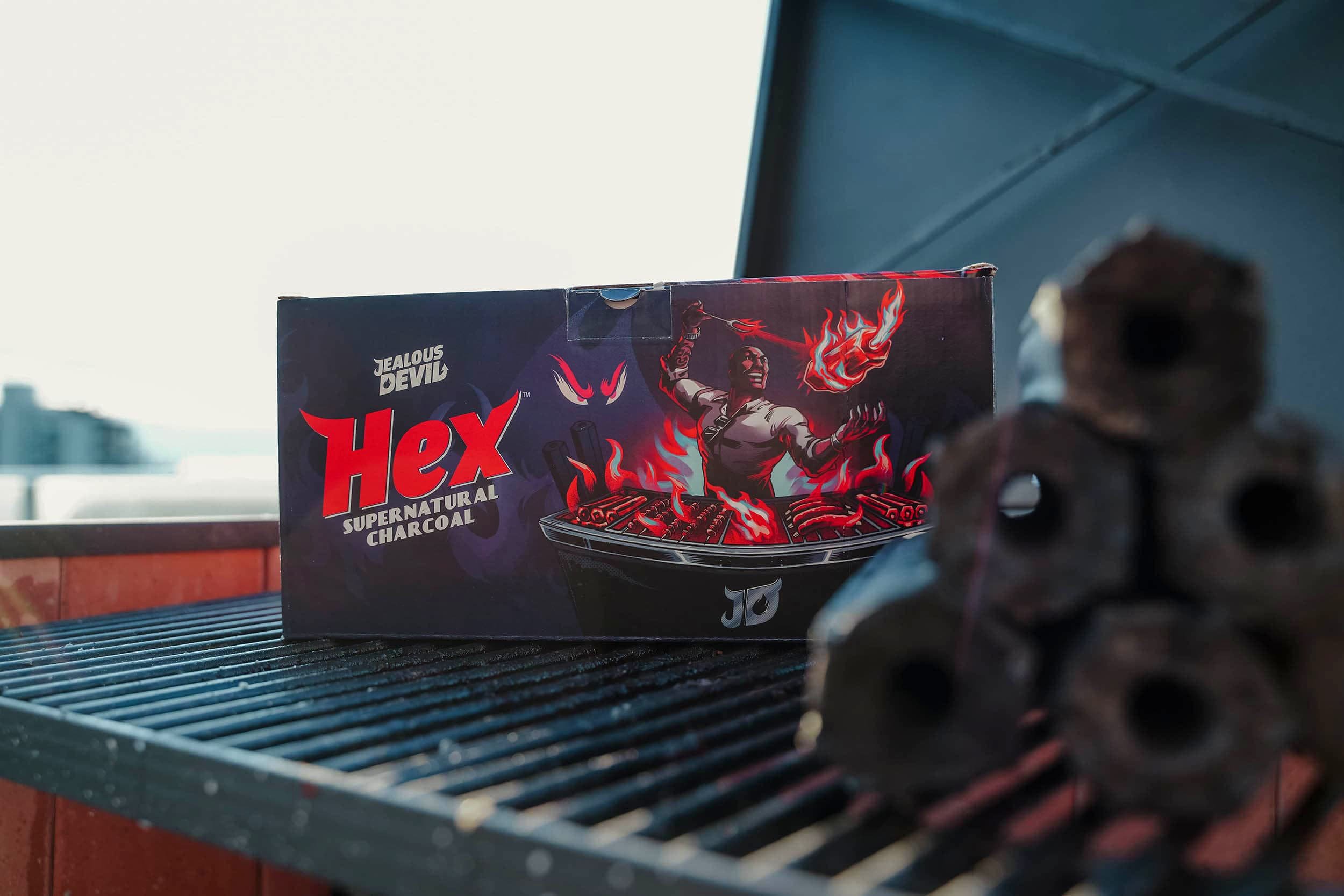 Jealous Devil’s Hex Supernatural Charcoal combina la consistencia de las briquetas con la pureza natural de la masa, y supera a ambas. Hex está elaborado 100% de madera dura comprimida con fuerza sobrenatural y carbonizada a una increíble temperatura de 2200ºF. ¿El resultado? Un carbón de leña totalmente natural con calor y potencia incomparables.